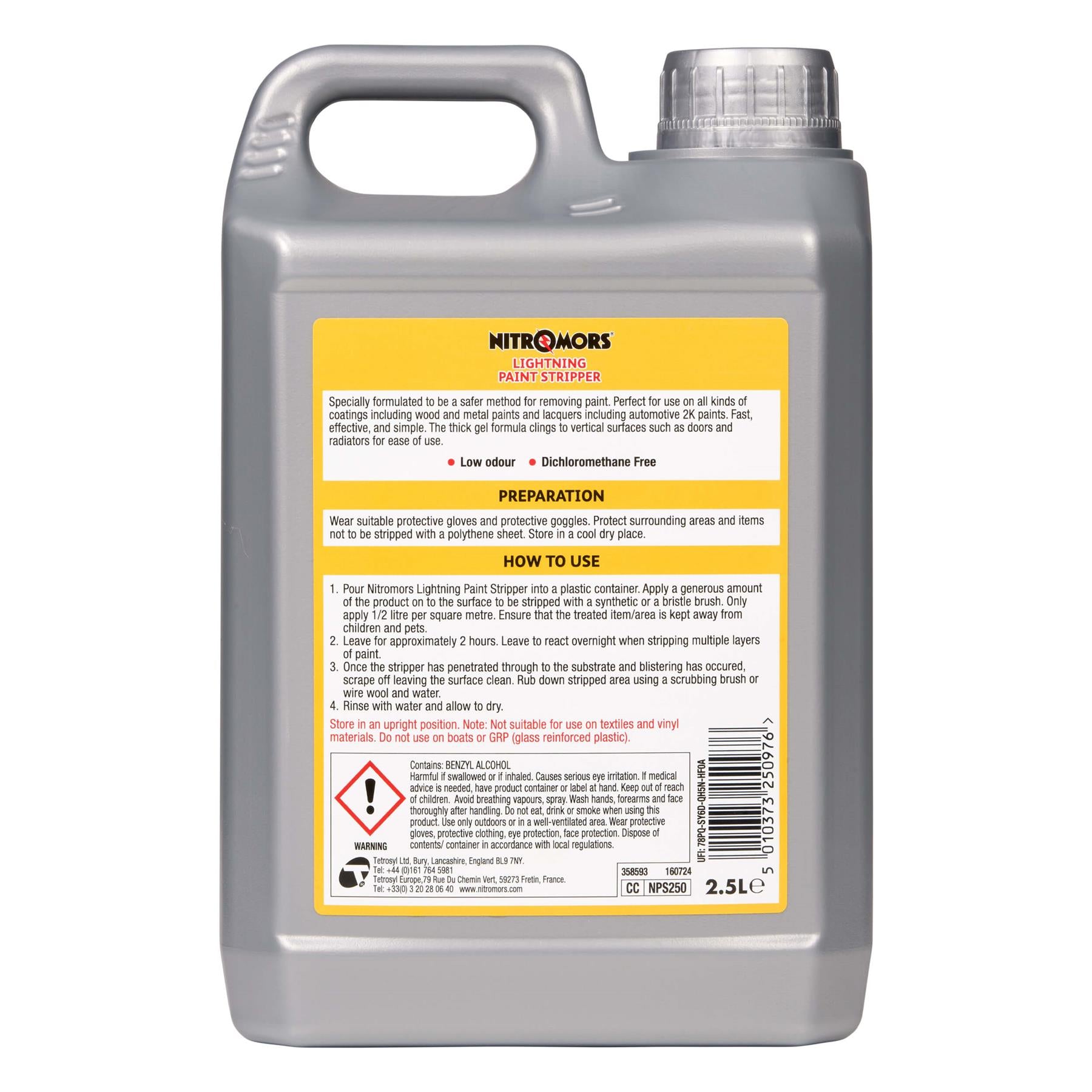 Nitromors Lightning Paint Stripper is a specially designed, safer solution for removing paint and coatings. It is effective on a wide range of surfaces, including wood, metal, and automotive 2K paints, as well as lacquers. The formula is fast-acting, efficient, and easy to apply. Its thick gel consistency ensures it clings to vertical surfaces like doors and radiators, making it ideal for tackling tricky areas. With a low odour and being free of dichloromethane, this product is a more pleasant alternative for your paint-stripping needs.