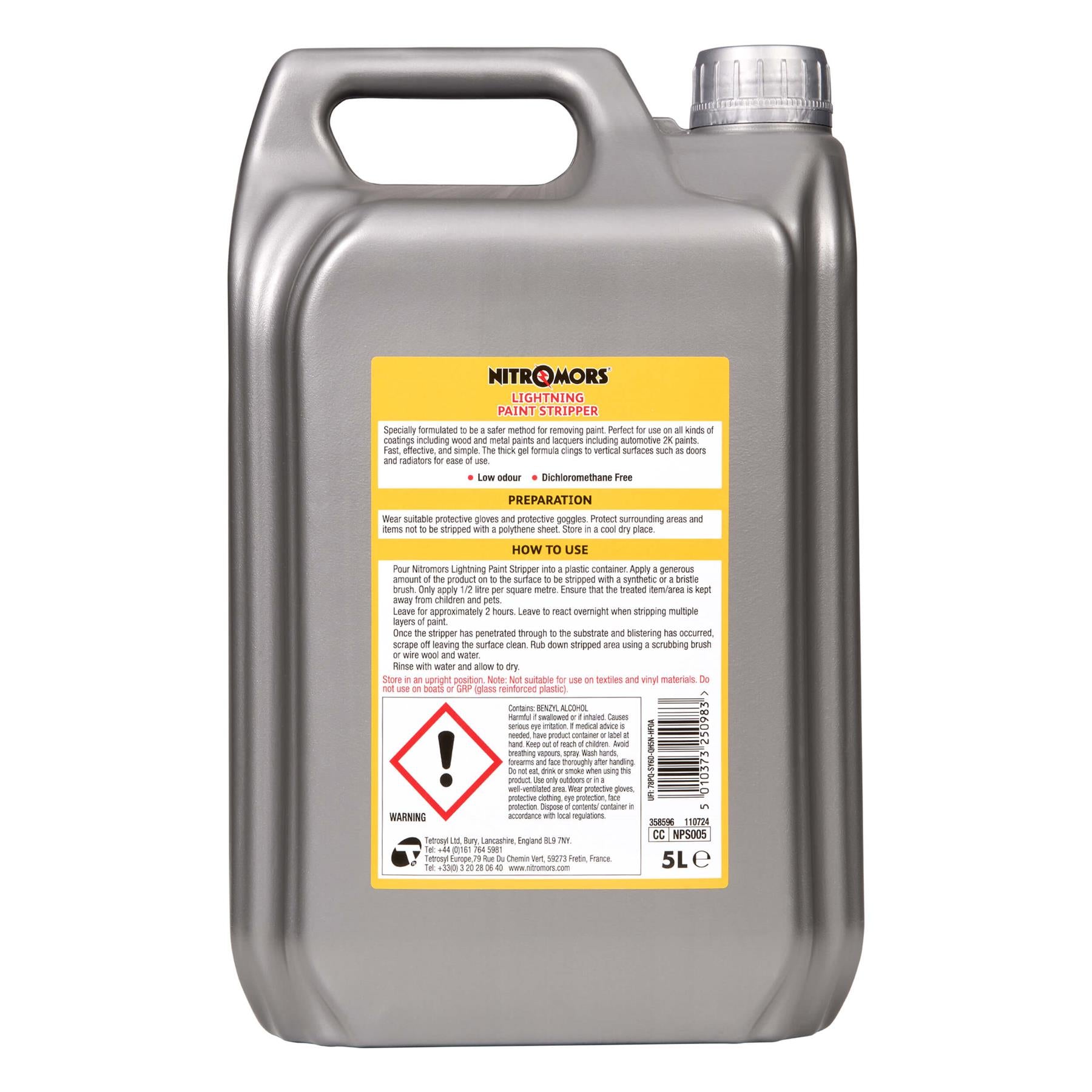 Nitromors Lightning Paint Stripper is a specially designed, safer solution for removing paint and coatings. It is effective on a wide range of surfaces, including wood, metal, and automotive 2K paints, as well as lacquers. The formula is fast-acting, efficient, and easy to apply. Its thick gel consistency ensures it clings to vertical surfaces like doors and radiators, making it ideal for tackling tricky areas. With a low odour and being free of dichloromethane, this product is a more pleasant alternative for your paint-stripping needs.